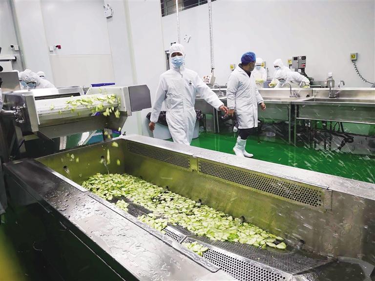 通過(guò)員工通道,在該廚房生產(chǎn)廠長(zhǎng)甘文忠的指導(dǎo)下,記者穿上了白色工作服、戴上食品安全帽,換上高筒膠鞋,洗手消毒、測(cè)量體溫、隨身攜帶的手機(jī)、首飾全部摘掉后,通過(guò)腳踏池進(jìn)入生產(chǎn)加工車(chē)間。