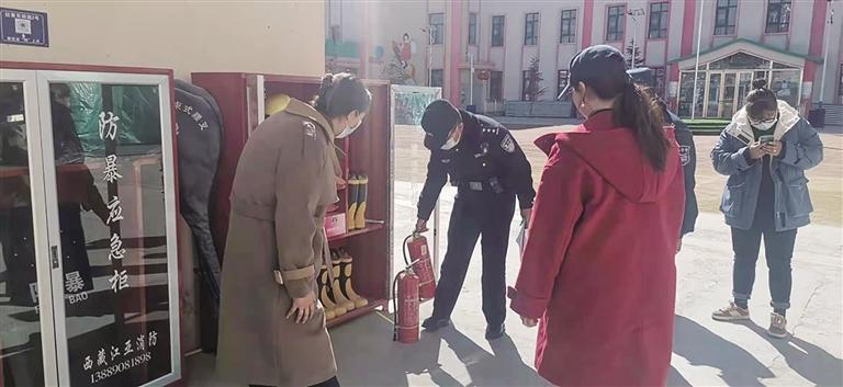 拉薩市公安局城關(guān)公安分局蔡公堂派出所民警深入轄區(qū)開展新學(xué)期校園安全檢查工作,從安全責(zé)任落實、安防器材配備、視頻監(jiān)控、消防設(shè)施、學(xué)?!白o(hù)校隊”等方面進(jìn)行全方位排查梳理,封堵安全管理漏洞。