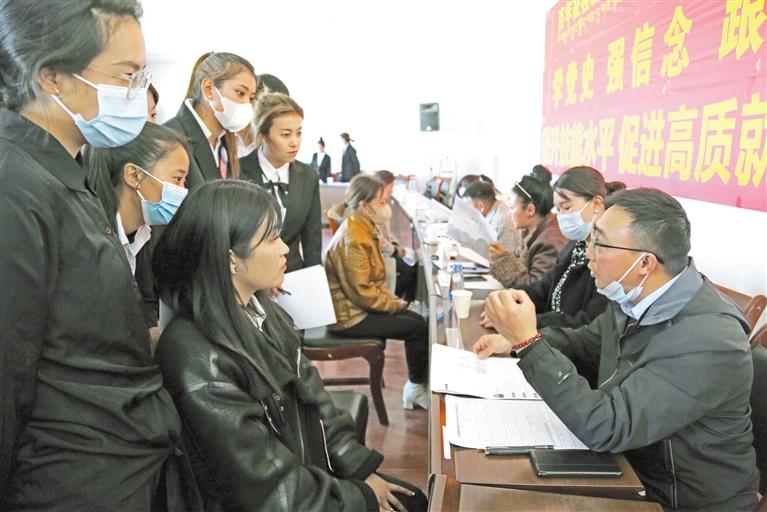 近日,拉薩市墨竹工卡縣舉辦第三屆“格?;ㄩ_”大學(xué)生就業(yè)創(chuàng)業(yè)特訓(xùn)營崗位對接會。西藏藏建科技股份有限公司等7家優(yōu)質(zhì)企業(yè)到該縣人社局進行招聘洽談,全體35名學(xué)員參加。企業(yè)負責(zé)人結(jié)合學(xué)員的介紹情況,一對一進行了深入的溝通了解,學(xué)員們對自身意向崗位投遞了求職簡歷,企業(yè)和學(xué)員進行了雙向選擇。
