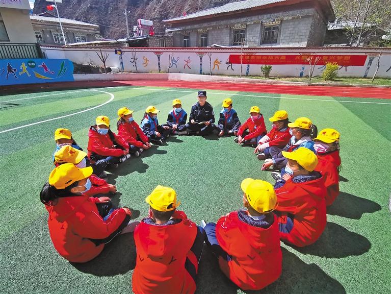 圖為林芝邊境管理支隊(duì)金東邊境派出所民警向小學(xué)生宣講國家安全知識。徐華升 攝