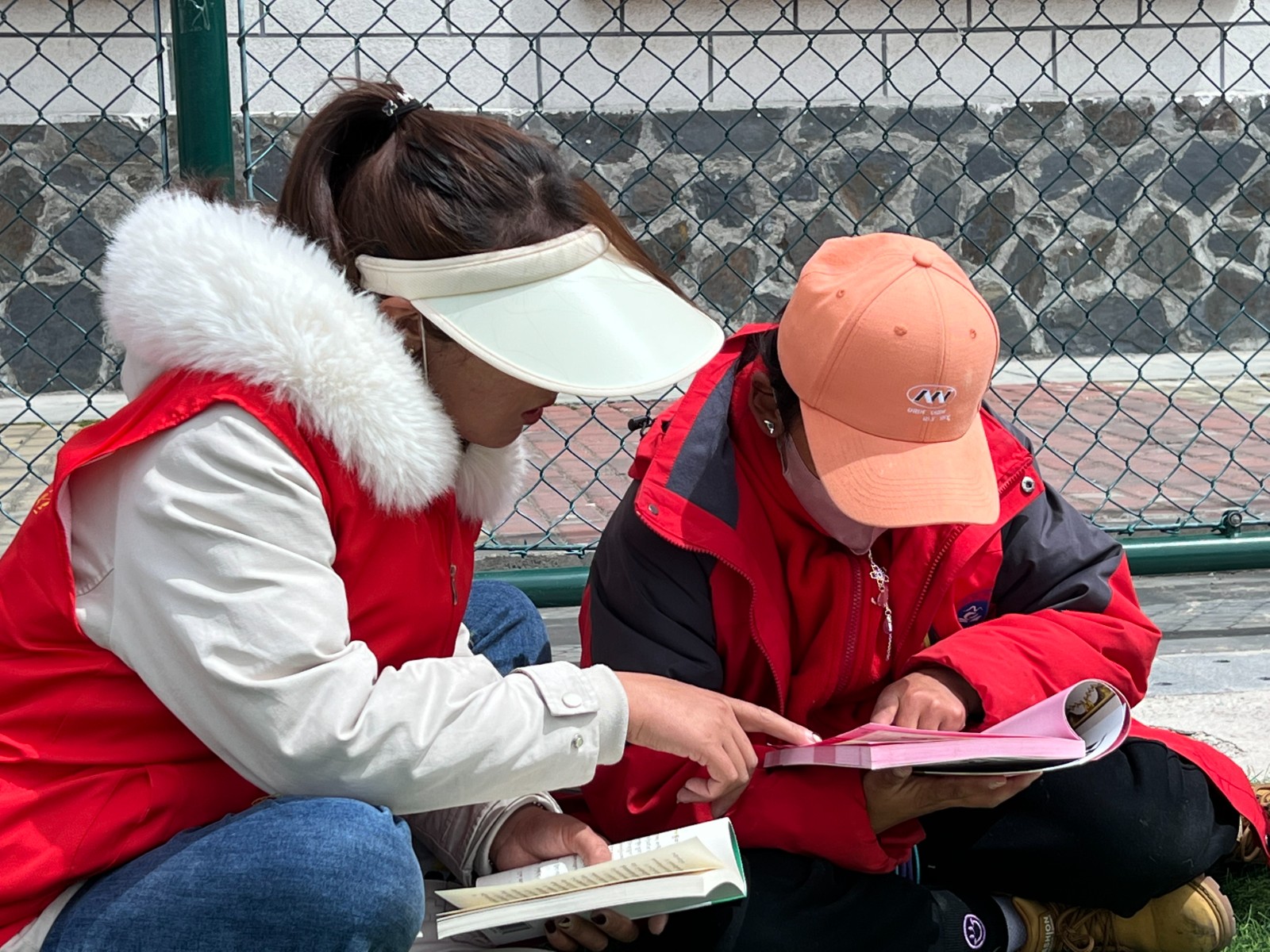 工作人員與學(xué)生誦讀經(jīng)典。