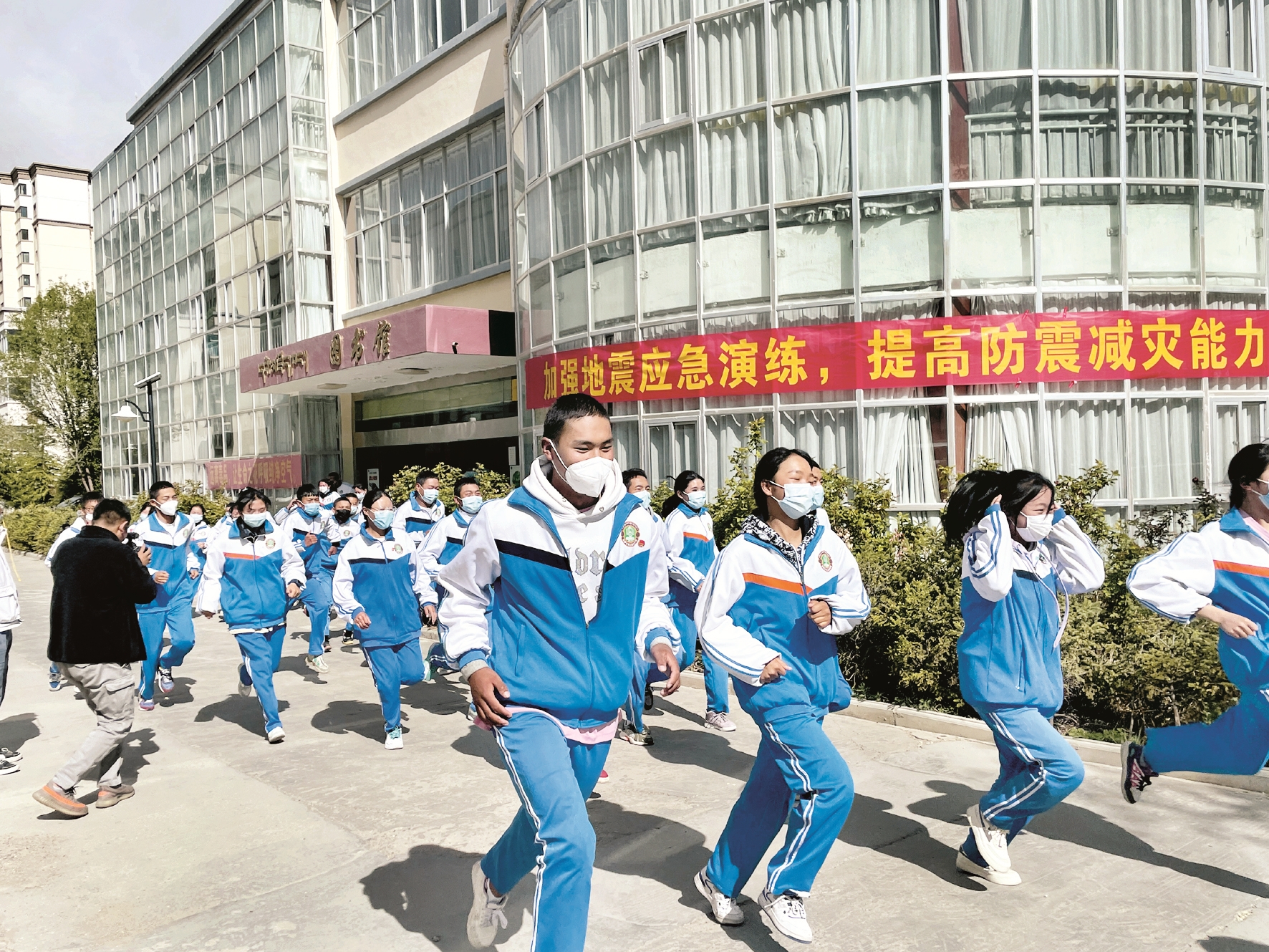 圖為拉薩市第三高級(jí)中學(xué)組織在校師生開展地震應(yīng)急疏散演練。拉薩融媒記者 楊 璐攝