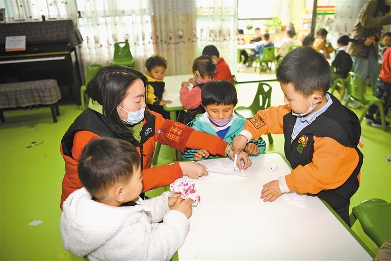 圖為孩子們在老師指導(dǎo)下為媽媽制作禮物。記者 王敏 攝
