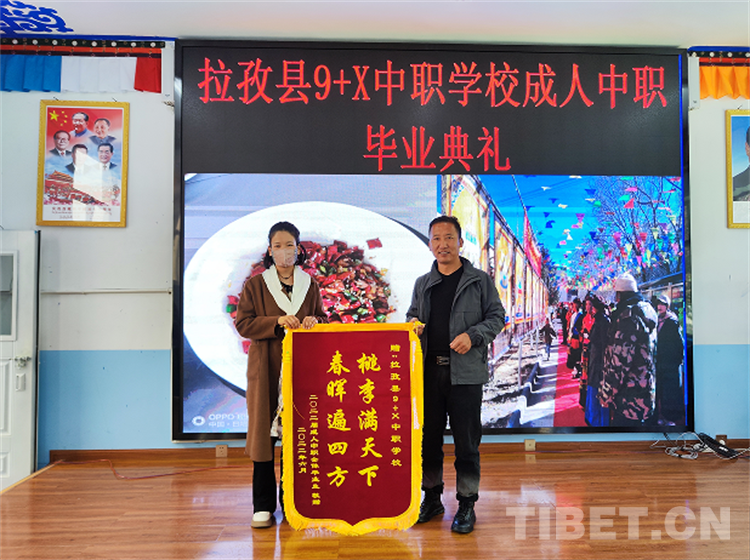 典禮上,拉孜縣9+X中職學(xué)校校長(zhǎng)旦珍旺加對(duì)廣大畢業(yè)生殷殷囑托,希望他們?cè)诮窈蟮墓ぷ鲘徫簧鲜聵I(yè)有成、蒸蒸日上。隨后由成人中職學(xué)校代表、學(xué)生家長(zhǎng)向?qū)W校贈(zèng)送錦旗,以感謝學(xué)校一直以來為學(xué)生們提供學(xué)習(xí)與實(shí)踐平臺(tái),為孩子們培養(yǎng)技能。
