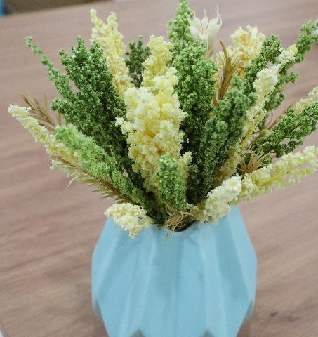 陳俊璋和公司團(tuán)隊(duì)研發(fā)打造的藜麥永生花。新華社記者 文靜 攝