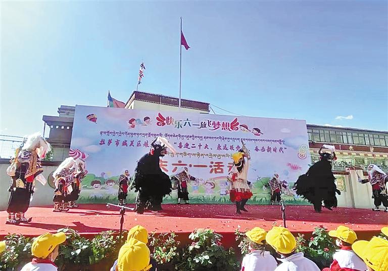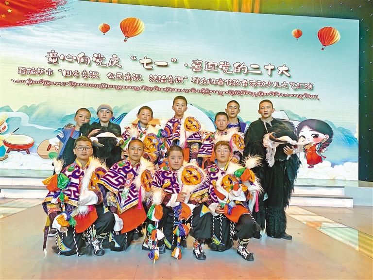 娘熱小學(xué)藏戲興趣班的孩子參加拉薩市相關(guān)演出活動(dòng)。