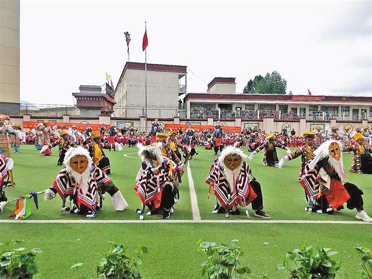 據(jù)了解,娘熱小學(xué)藏戲興趣班總共有120余名學(xué)生,通過(guò)學(xué)校的培養(yǎng)和孩子們的不斷努力,孩子們經(jīng)常參加校內(nèi)外舉行的各項(xiàng)演出活動(dòng)。下一步,藏戲興趣班還將拓展朗瑪、堆諧等傳統(tǒng)民族舞蹈教育,讓學(xué)生在傳統(tǒng)文化中浸潤(rùn)成長(zhǎng)。