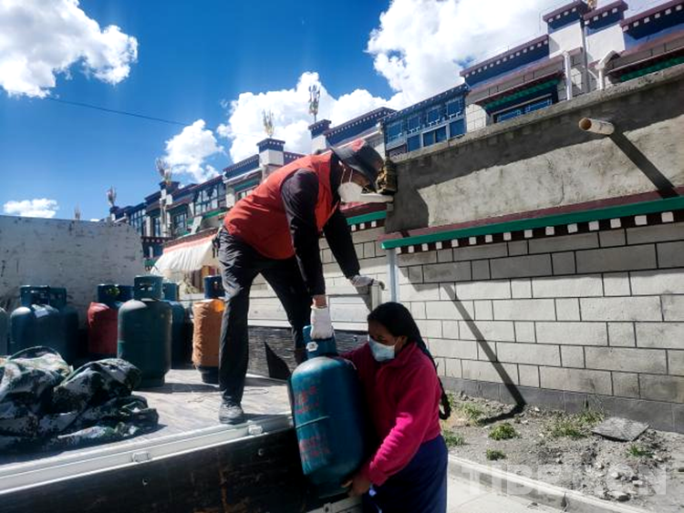 志愿服務(wù)隊(duì)志愿者們通過(guò)電話、微信群等方式排查,詢(xún)問(wèn)并收集群眾基本生活物資(面粉、大米、煤氣罐加氣、蔬菜)需求,安排專(zhuān)人和車(chē)子到洛扎縣城進(jìn)行代購(gòu),并以最快的速度把物資送到群眾家門(mén)口。