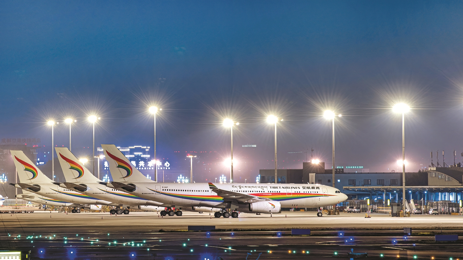 近期,西藏航空推出了包機(jī)、航線往返次卡等服務(wù),最大程度地滿足旅客逐步釋放的出行需求。圖為西藏航空機(jī)隊(duì)。(西藏航空供圖)