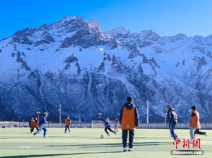圖為11月25日,西藏那曲市嘉黎縣中學(xué)學(xué)生們?cè)凇把┥较碌膲?mèng)幻足球場(chǎng)”上進(jìn)行足球訓(xùn)練。 中新社記者 貢嘎來松 攝