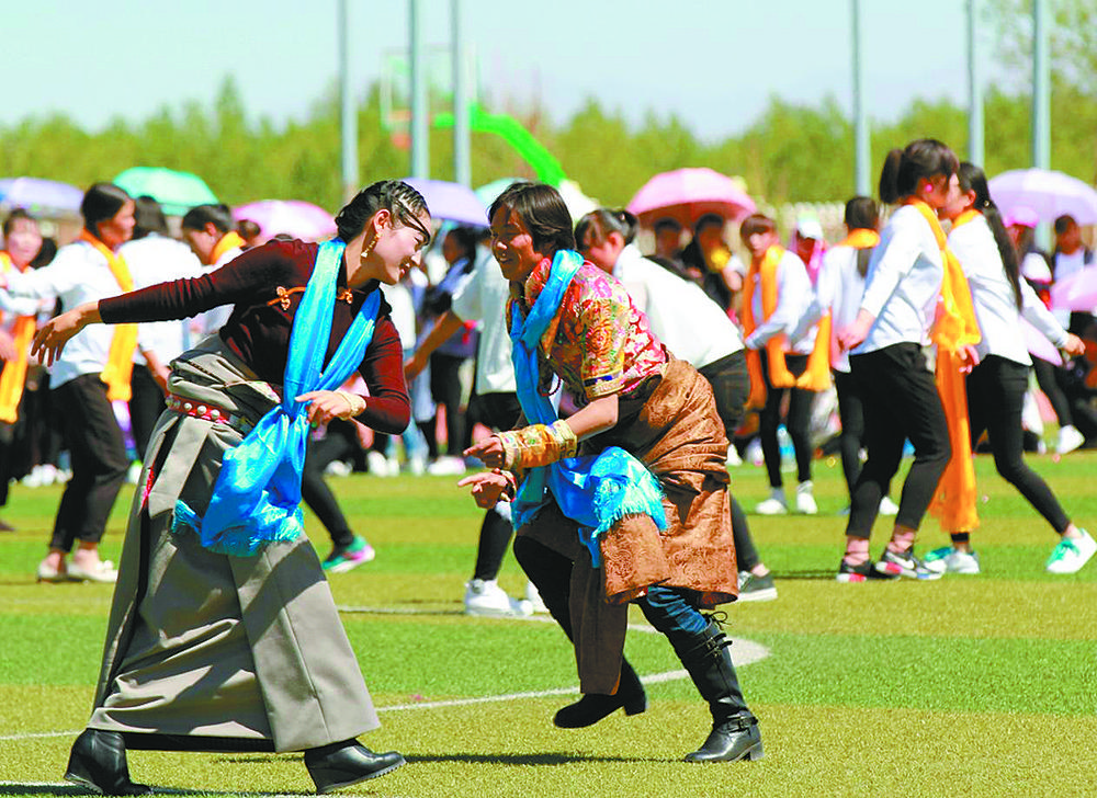 民族集體舞大賽現(xiàn)場。青海柴達木職業(yè)技術(shù)學院供圖