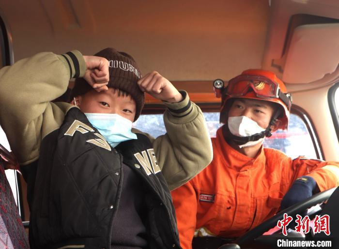 森林消防隊員組織小朋友體驗消防車。 林芝市森林消防供圖