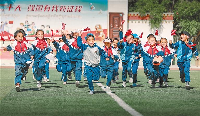 援藏教師和孩子們在一塊(拍攝地:山南市乃東區(qū)) 王志偉 攝