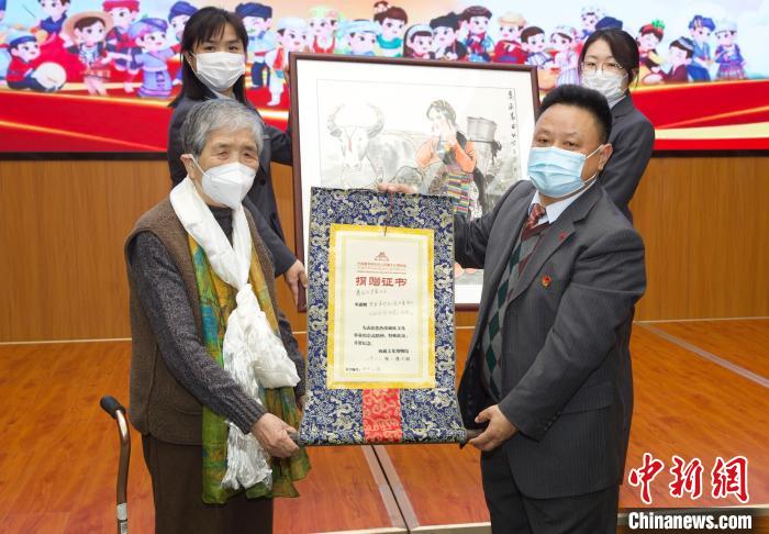 圖為活動當天知名畫家吳茜向中國藏學研究中心西藏文化博物館捐贈西藏主題作品?!≈袊貙W研究中心供圖
