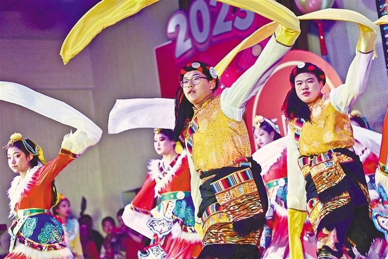 圖為學(xué)生在藏歷新年團(tuán)拜活動上表演藏族舞蹈。 新華社記者 李一博 攝