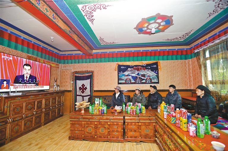 西藏廣大干部群眾收聽(tīng)收看十四屆全國(guó)人大一次會(huì)議開(kāi)幕盛況