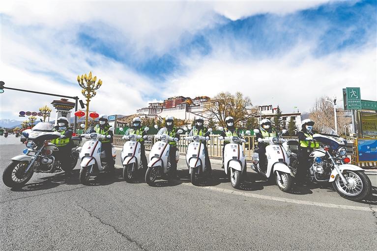 拉薩市公安局交警支隊城北大隊女子中隊交警颯爽英姿。記者 唐斌 攝