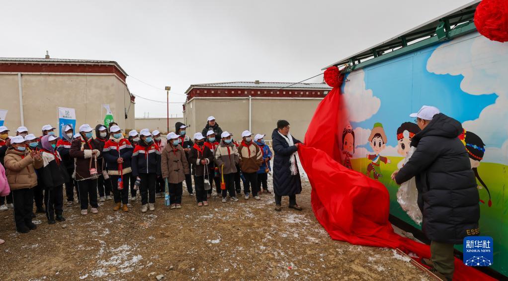 3月21日,那曲市色尼區(qū)香茂鄉(xiāng)小學(xué)的同學(xué)們?cè)谛聠⒂玫膬羲敬蛩?。新華社記者 姜帆 攝