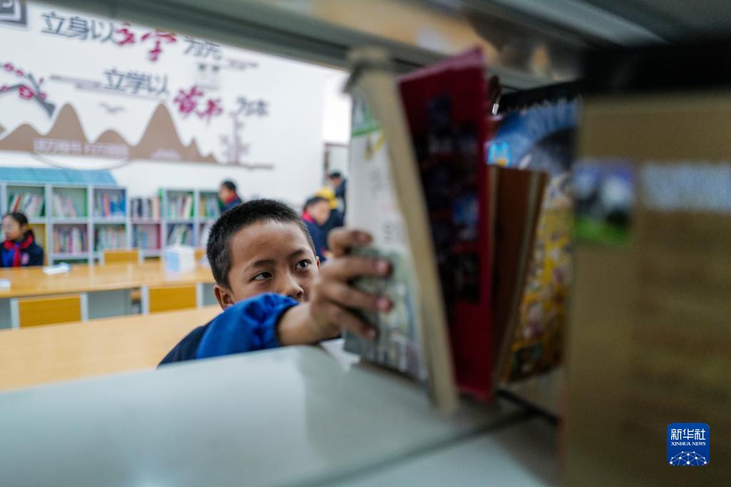 3月31日,下察隅鎮(zhèn)的孩子們?cè)陂_(kāi)放書(shū)吧閱讀書(shū)籍。新華社記者 王澤昊 攝