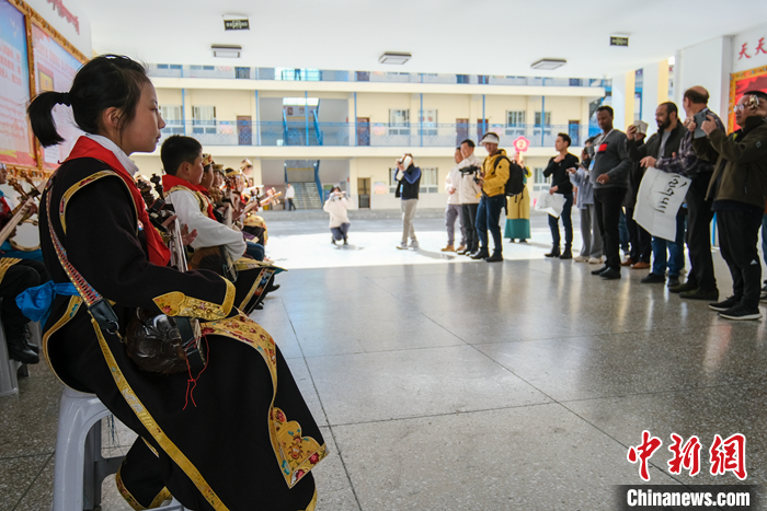 多國駐華大使及外籍人士在西藏小學聽扎念琴、體驗藏文書法