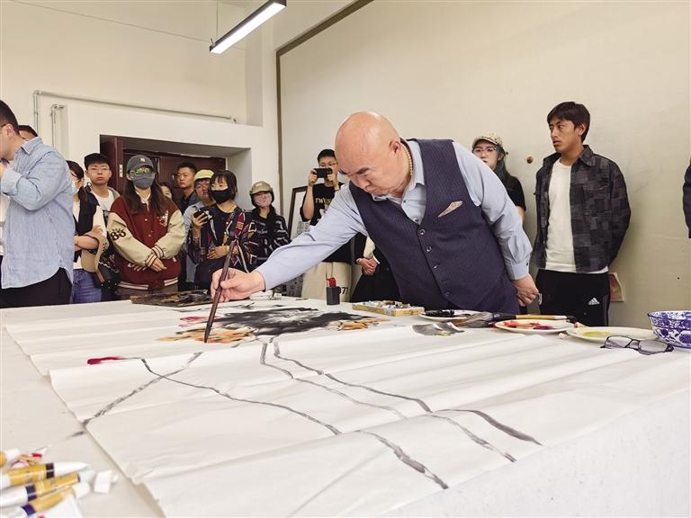 6月5日,由國家藝術(shù)基金支持,北京畫友藝術(shù)交流中心主辦的《意境》唐詩主題畫展在西藏大學(xué)藝術(shù)學(xué)院成功舉辦。此次主題畫展有賈平西、劉曦林、張松等20余位藝術(shù)家作品參展。中國藝術(shù)研究院文學(xué)藝術(shù)院專職畫家、國家一級美術(shù)師林維與南開大學(xué)藝術(shù)與美學(xué)研究院副院長、博士生導(dǎo)師尹滄?,F(xiàn)場揮毫潑墨、即興發(fā)揮,給西藏大學(xué)獻(xiàn)上了兩幅圖。