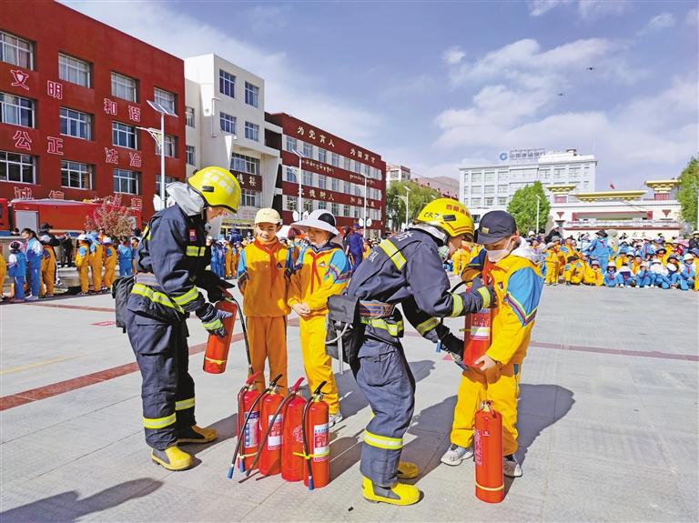 近日,日喀則市減災(zāi)委員會在日喀則市小學(xué)開展了“防災(zāi)減災(zāi)進(jìn)校園”主題活動?;顒又校乐笐?zhàn)員向師生詳細(xì)講解了消防裝備用途和用法,并組織師生開展消防應(yīng)急疏散演練。沉浸式、互動式、體驗(yàn)式的防災(zāi)減災(zāi)宣傳,進(jìn)一步增強(qiáng)了師生消防安全意識,提高了應(yīng)急避險、自救互救能力。