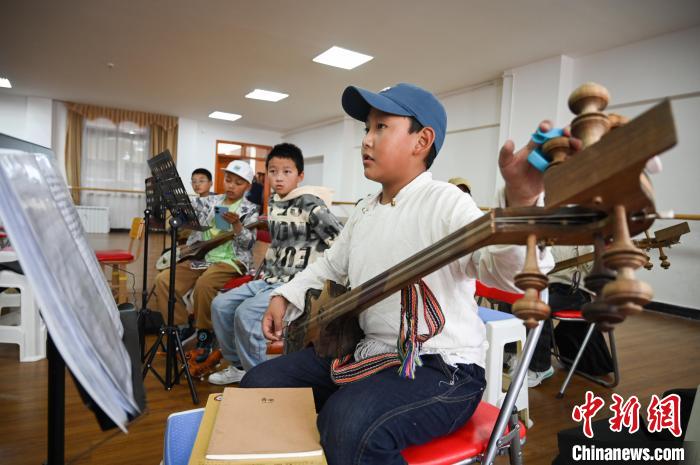 7月30日,在西藏自治區(qū)群藝館(區(qū)非遺中心),小學員們正在學習扎念琴。中新社記者 趙朗 攝