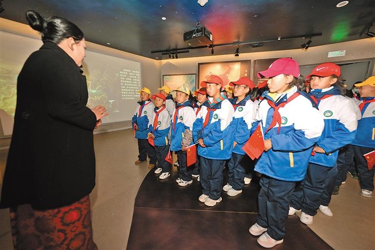 圖為拉薩市堆龍德慶區(qū)乃瓊中心小學(xué)的學(xué)生參觀百萬(wàn)農(nóng)奴解放紀(jì)念館。記者 潘多 攝