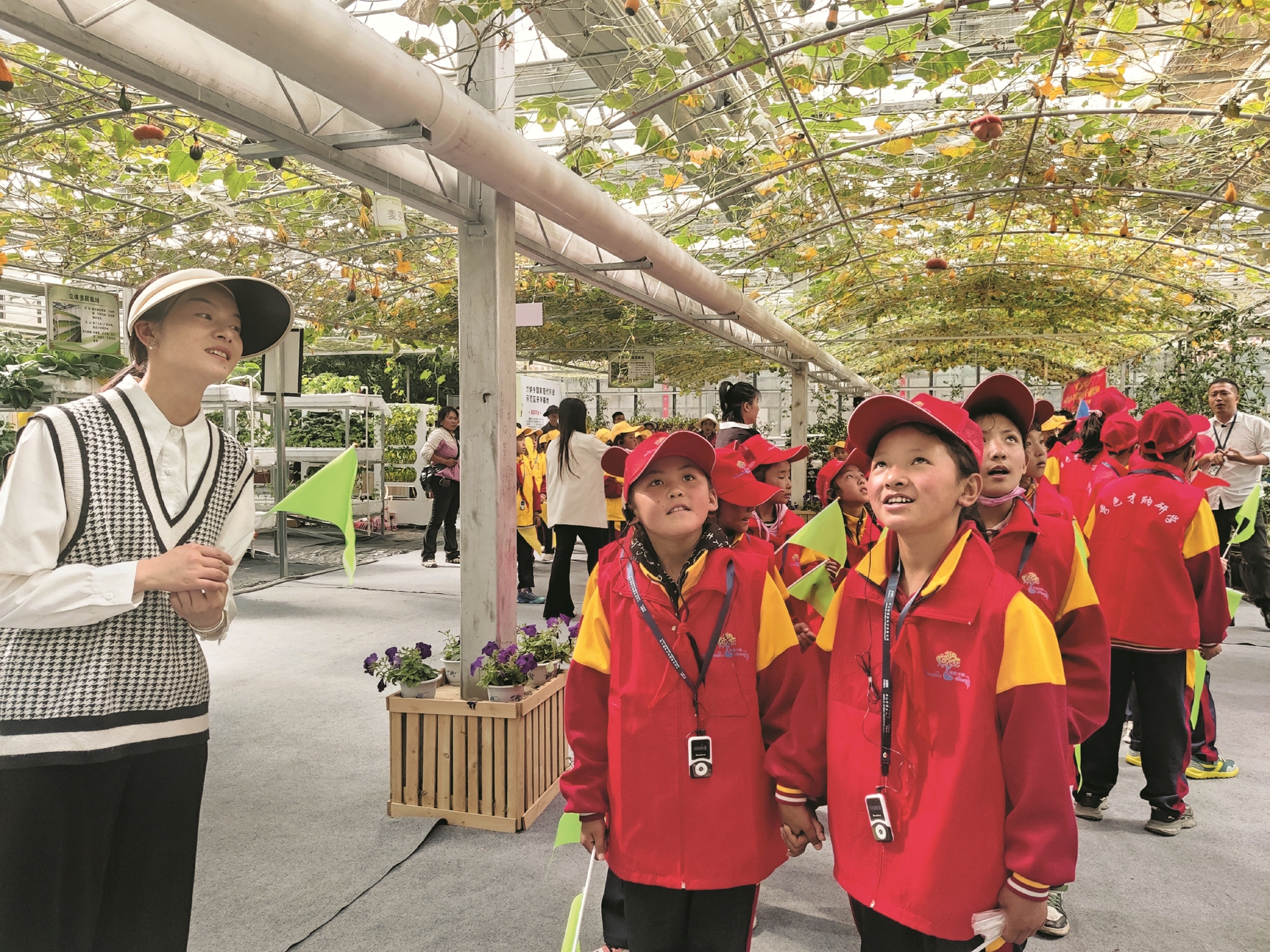 圖為學(xué)生參觀才納鄉(xiāng)國(guó)家現(xiàn)代農(nóng)業(yè)示范園區(qū)無(wú)土栽培展館。 拉薩融媒記者 余洋洋攝