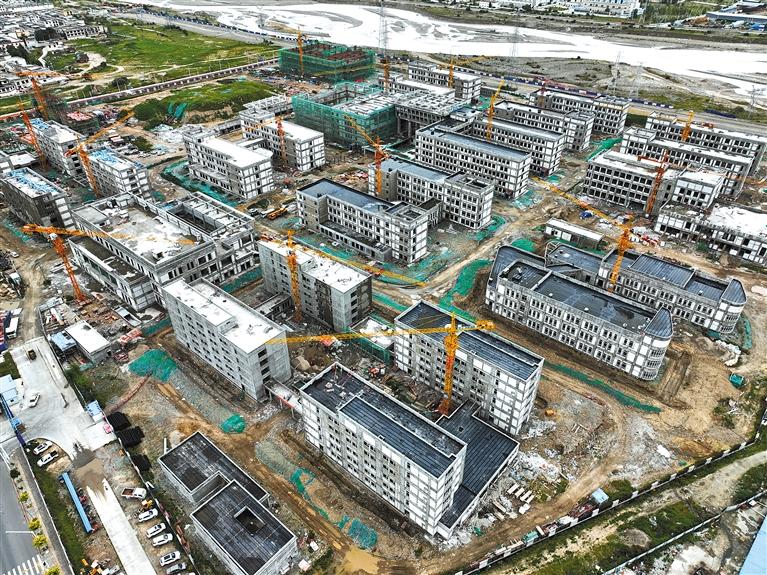 人大附中拉薩學(xué)校建設(shè)項(xiàng)目位于堆龍德慶區(qū),概算總投資8.2億元,規(guī)劃用地面積310畝,總建筑面積15.8萬平方米。計(jì)劃2023年完成所有單體主體施工及硬化,2024年春季實(shí)施綠化種植,5月竣工、8月招生辦學(xué)。該項(xiàng)目建成后,將開設(shè)108個(gè)班,有效解決5040個(gè)標(biāo)準(zhǔn)學(xué)位,其中學(xué)前12個(gè)班、小學(xué)24個(gè)班、初中36個(gè)班、高中36個(gè)班,將有效提升拉薩乃至全區(qū)各學(xué)段教育供給能力。目前主體已完工,所有用房已封頂,施工進(jìn)展順利。