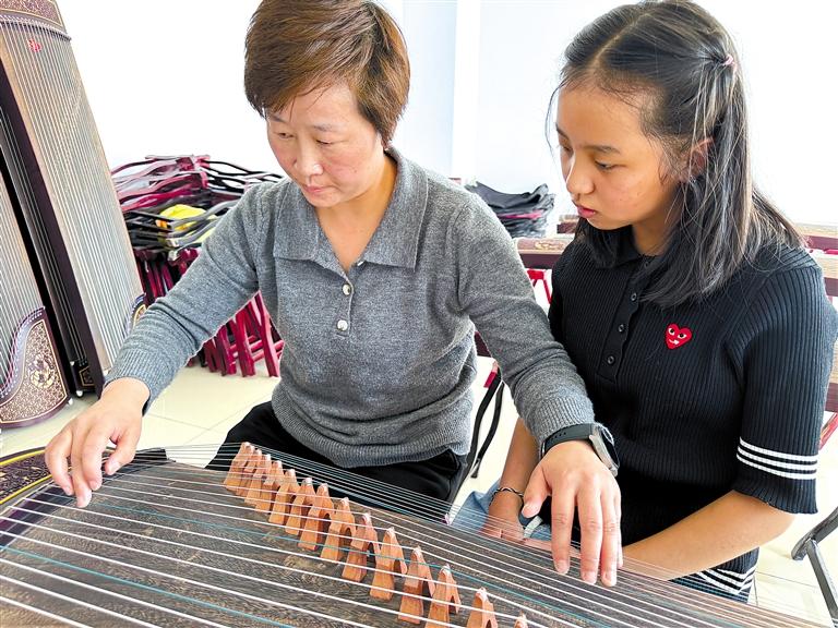 圖為少年宮學(xué)員學(xué)習(xí)古箏。