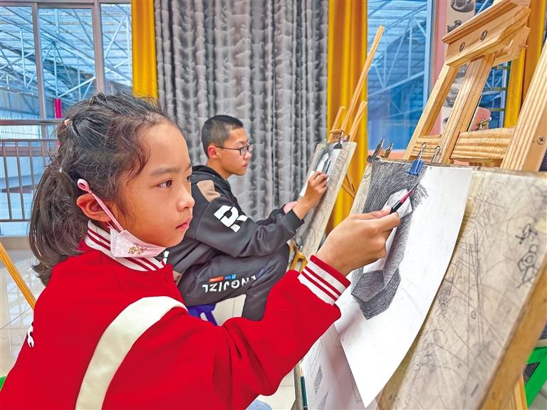 圖為少年宮學(xué)員練習(xí)素描。