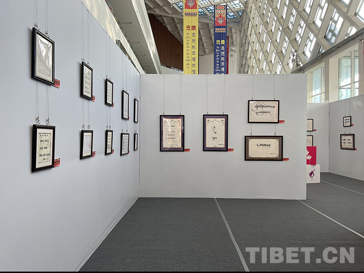 圖為“巾幗夜?!睂W(xué)員創(chuàng)作的漢藏書法作品展示區(qū)。攝影:德吉卓瑪