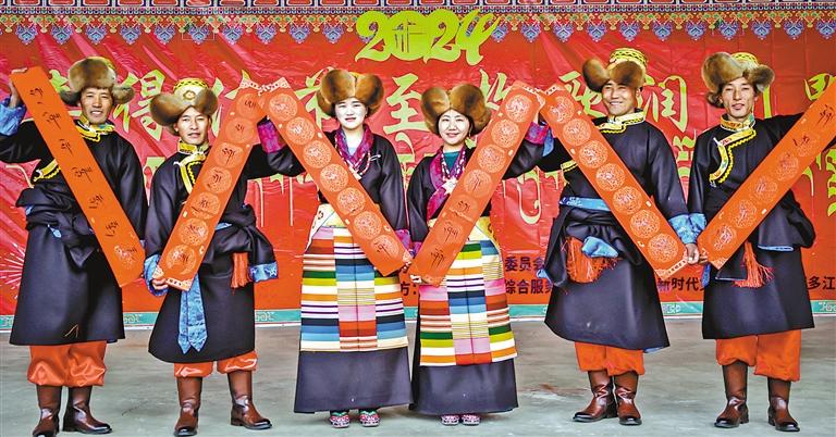 日前,西藏山南市曲松縣邱多江鄉(xiāng)組織300多名干部群眾在瑪如村舉辦了以“喜得佳節(jié)至 牧歌潤川野”為主題的“村晚”文藝匯演活動。當(dāng)?shù)啬撩瘛⒎掂l(xiāng)大學(xué)生用17個精彩的舞蹈、歌曲、朗誦等節(jié)目,謳歌新時代新生活,展現(xiàn)基層群眾積極樂觀、昂揚向上的精神風(fēng)貌。