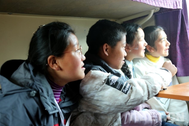 還有一到飯點(diǎn)就來(lái)詢問(wèn)孩子們?cè)趺闯燥埖牧熊噯T、和孩子們一起跳鍋莊的游客、主動(dòng)分享零食的小妹妹……同學(xué)們?cè)诨疖嚿系慕?jīng)歷,讓帶隊(duì)老師次仁羅布不禁感嘆,孩子們第一次出遠(yuǎn)門,還沒到目的地就已經(jīng)深切地感受到中華民族一家親的濃厚氛圍,真是非常幸運(yùn)。