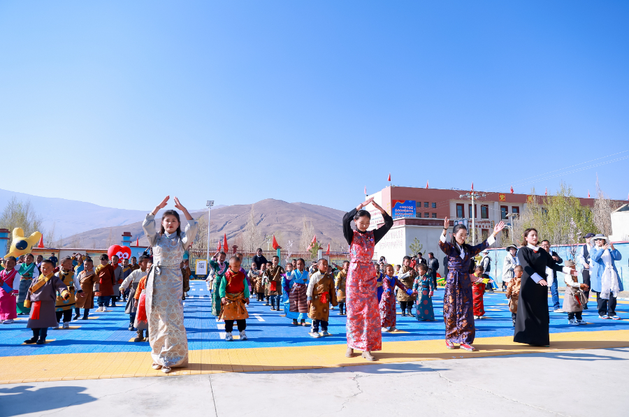 西藏日喀則卡堆鄉(xiāng)幼兒園美團(tuán)鄉(xiāng)村兒童操場(chǎng)落成儀式西藏鍋莊舞表演