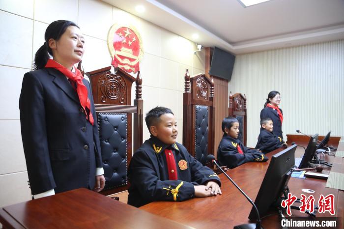 圖為學生們在法官的帶領(lǐng)下沉浸式體驗?zāi)M法庭。倫珠澤仁攝