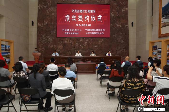 6月6日,中國(guó)藏學(xué)研究中心西藏文化博物館與中國(guó)郵政集團(tuán)有限公司北京市朝陽(yáng)區(qū)分公司聯(lián)合建立“北京西藏文化郵空間”合作簽約儀式6日在位于北京的西藏文化博物館舉行?!≈袊?guó)藏學(xué)研究中心西藏文化博物館供圖