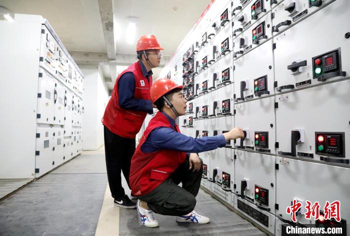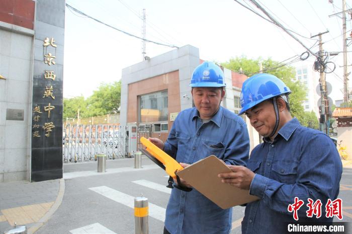 國(guó)網(wǎng)北京朝陽(yáng)供電公司員工在北京西藏中學(xué)開(kāi)展高考保電工作。翟磊 攝