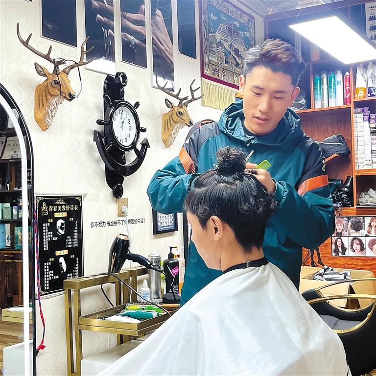 “這些年,隨著家鄉(xiāng)越來越繁榮,群眾生活水平不斷提高,大家也更加注重形象,對‘美’有了更高的追求?!苯?jīng)過自己的觀察思考和對家鄉(xiāng)的深入了解,巴桑加措覺得家鄉(xiāng)的理發(fā)行業(yè)還是一片“藍?!?,前景非常好。