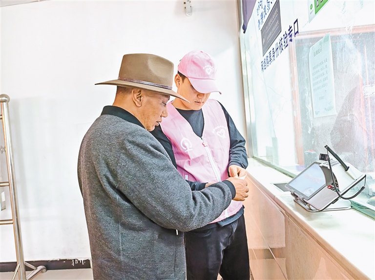 圖為志愿者幫助旅客確認(rèn)乘車時(shí)間。 通訊員 金耀勛 記者 盧文靜 攝