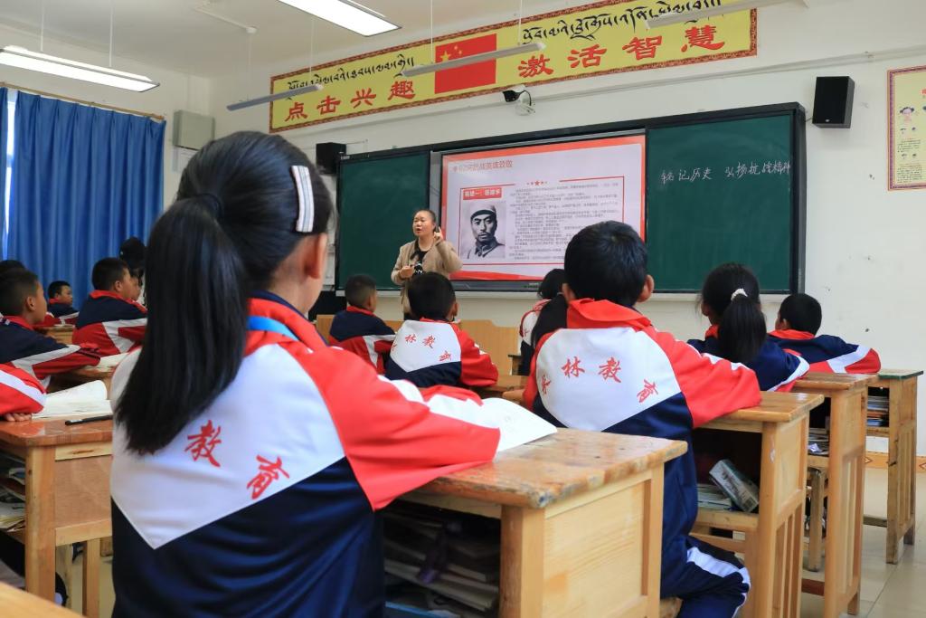 9月3日,林芝市米林市小學(xué)副校長曾潔為學(xué)生上課。新華社記者沈曉朦 攝