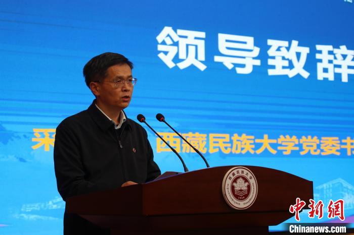 西藏民族大學(xué)黨委書記、副校長采守寬在第四屆“藏秦·喜馬拉雅”論壇開幕式發(fā)表致辭。 主辦方供圖