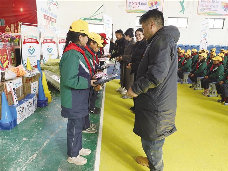 這是西藏體彩2024年“公益體彩 快樂操場”公益活動的最后一站,全年共選出了10所學(xué)校,累計捐贈了價值30萬元的體育器材和用品,旨在通過捐贈體育器材和設(shè)施,幫助孩子們擁有更加豐富多彩的課間生活,培養(yǎng)他們的健康理念和健身意識。