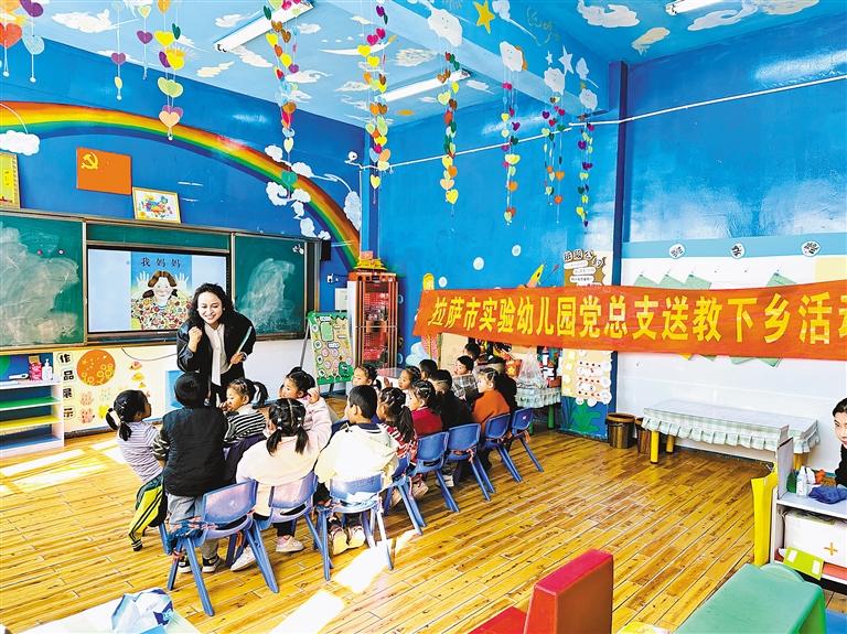 圖為拉薩市實驗幼兒園黨員教師深入曲水縣南木鄉(xiāng)幼兒園開展送教活動。記者 央金 攝