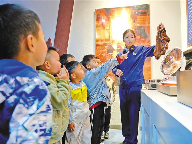小朋友們參觀消防科普教育基地,聆聽消防知識講解。