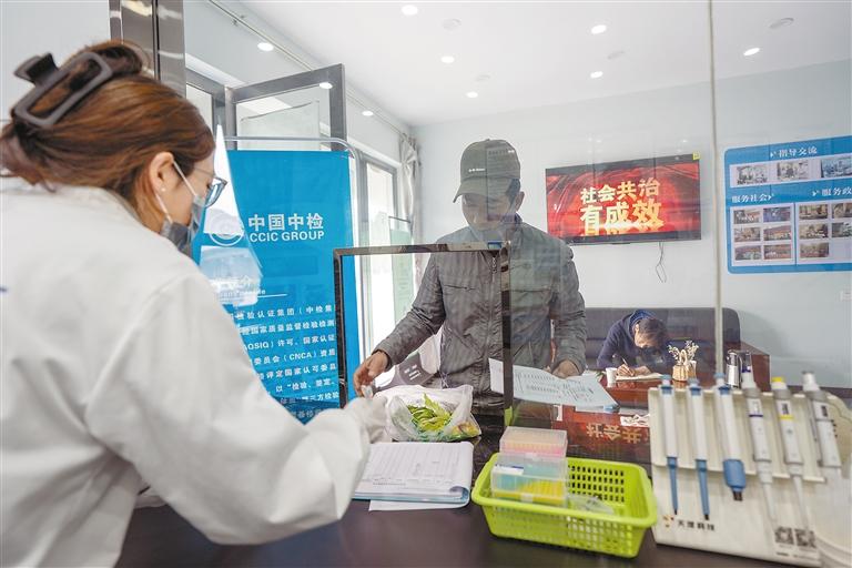 圖為市民在檢測(cè)站送檢驗(yàn)樣品。記者 貢曲羅杰 攝