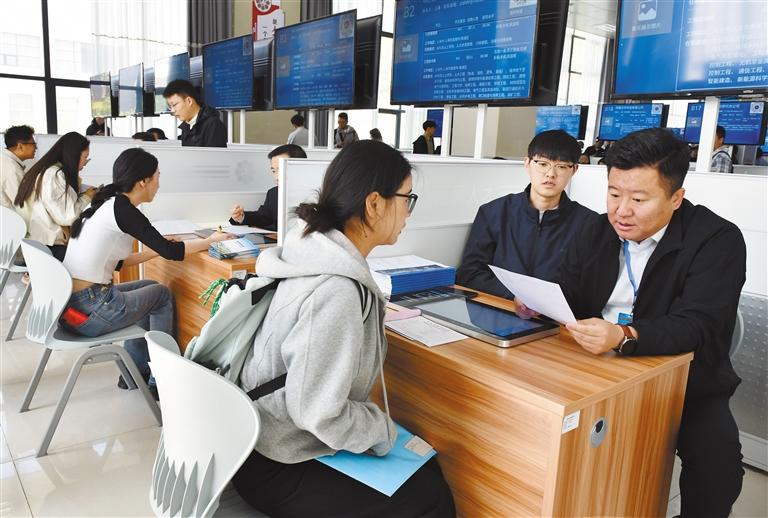 圖為招聘會現(xiàn)場,求職者向用人單位咨詢崗位具體情況。記者 旦增蘭澤 攝