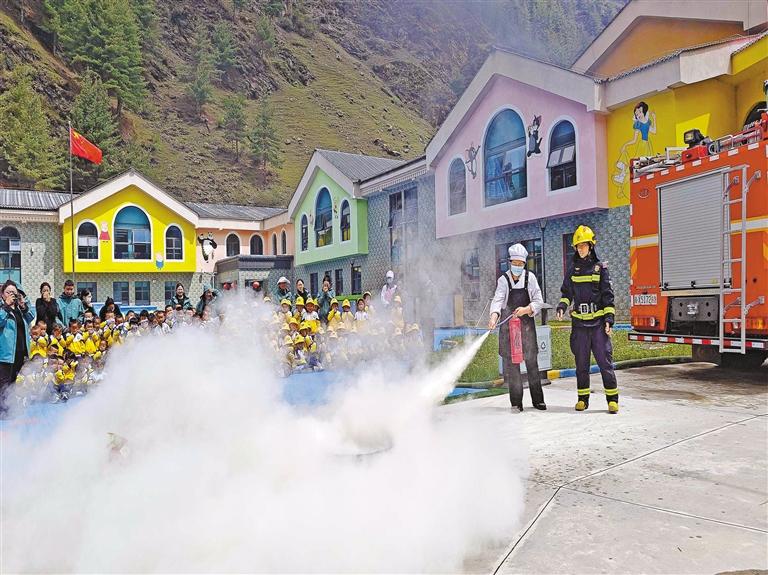 亞東縣消防救援大隊在亞東縣雙語幼兒園組織開展消防安全演練。