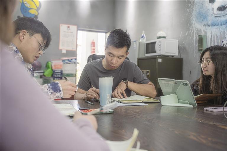 7月8日,武旗正和同事們?cè)谵k公室討論訂單事宜,仔細(xì)校對(duì)合同、核對(duì)團(tuán)隊(duì)分工后,最終敲定方案?!拔覀兂薪恿艘粋€(gè)政府項(xiàng)目,正在緊張籌備,最近很忙?!彼f。今年是他創(chuàng)業(yè)的第11年,而他的創(chuàng)業(yè)天賦早有顯露。